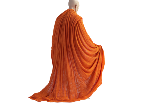Folded Saffron Buddhist Monk Robe, Front View, isolated on transparent background PNG