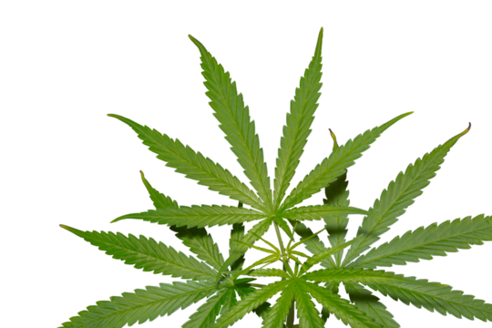 Male hemp or cannabis plant leaves, transparent background (PNG). Generative AI.