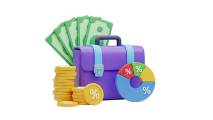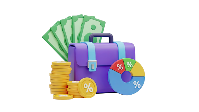 Business and Finance Icons: Briefcase, Money, Coins, and Pie Chart