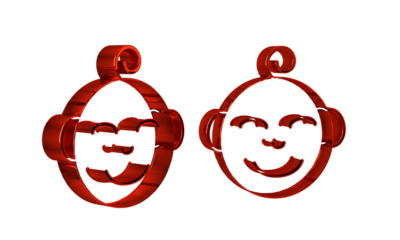 Red Happy little boy head icon isolated on transparent background. Face of baby boy.