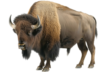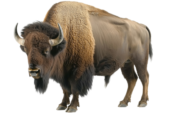 Mahogany wooden engraving Bison head trophy isolated on transparent background
