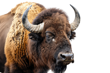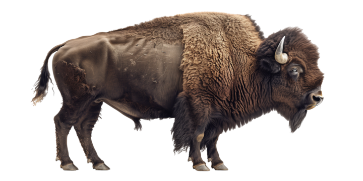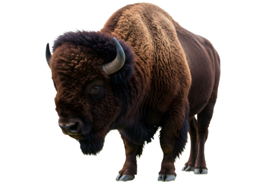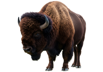 Majestic bison isolated on white background standing proudly showcasing powerful body and thick fur