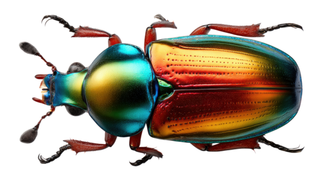 Radiant Beetle: A macro shot of a vibrant beetle showcasing iridescent body, exhibiting a spectrum of colors with intricate textures and patterns.