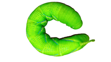 Vibrant Green Hornworm Caterpillar Isolated on Black