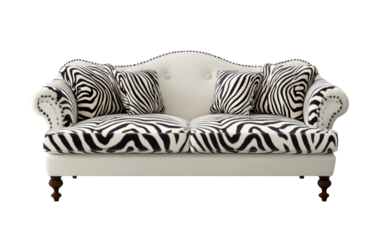 Unique zebra print couch designed for modern living rooms with elegant white upholstery and stylish legs