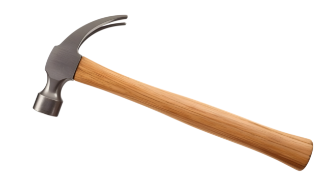 Claw hammer with wooden handle in studio lighting on white background for carpentry and DIY projects
