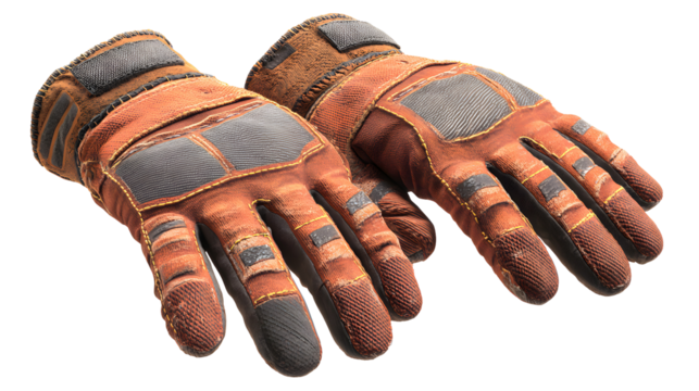 Dirty yellow work glove isolated on transparent background. Dirty yellow glove isolated on white background.