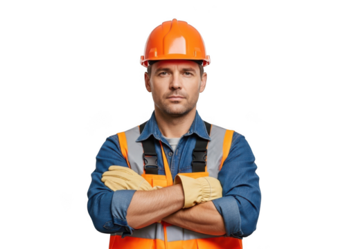 Construction worker: A confident construction worker, equipped with a yellow hard hat and work gloves, embodies strength and expertise, reflecting the pride and dedication inherent in his craft.