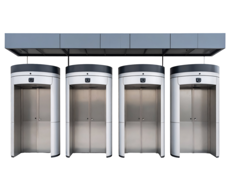 Automated assembly line, with robotic arms and conveyor belts, cutout, PNG isolated on transparent background