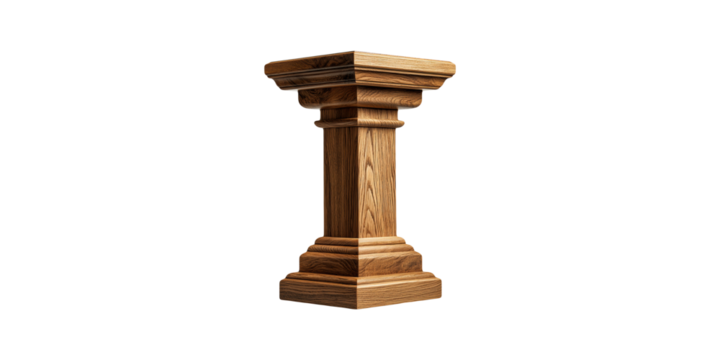 Wooden square column pedestal isolated on transparent background