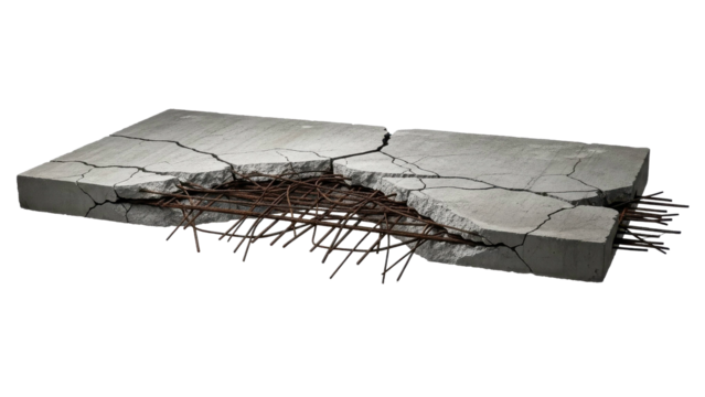 Broken Concrete Slab Showing Rebar Structure