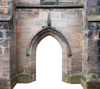A wide transparent doorway in an old wall, with a transparent ground