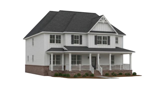 Modern Suburban House with Lush Green Lawn, Transparent Background