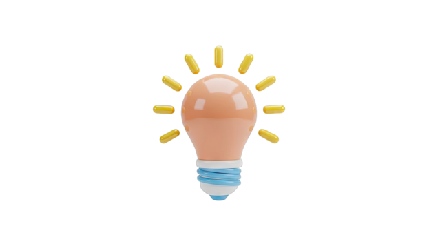 Cartoon light bulb glowing on transparent background