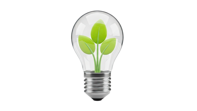Transparent light bulb with plant inside symbolizing eco-friendly ideas