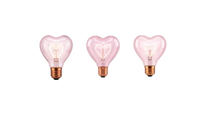 Vintage incandescent light bulb with a glowing heart-shaped filament emits a warm, bright light, representing concepts of love, passion, and brilliant ideas