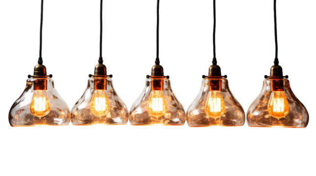 Hanging light bulbs cut pit. Vintage light bulbs hanging on transparent background