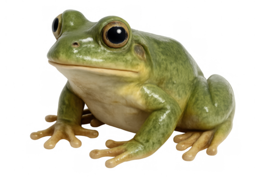 Green tree frog with bulging eyes sitting on a transparent background, ready to be used in any project