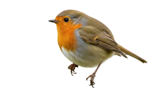 Isolated robin bird in studio, close-up of colorful plumage, avian species perched outdoors