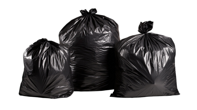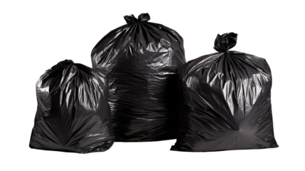 Two Full Black Plastic Garbage Bags Isolated on Transparent Background – Waste Disposal PNG