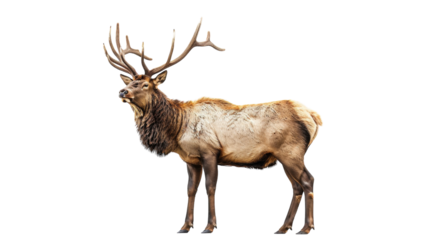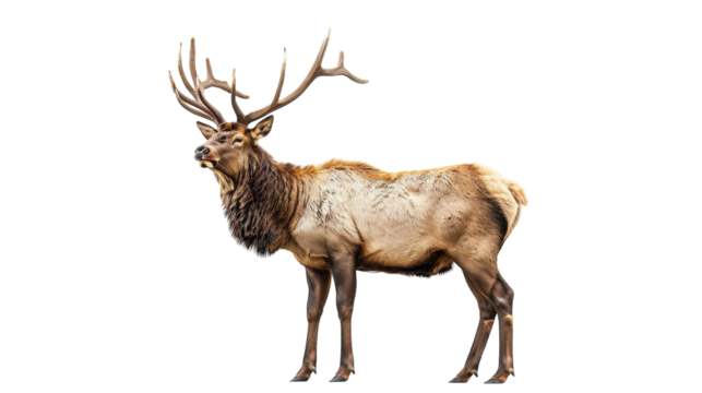 Majestic bull elk with large antlers standing proudly in a studio setting isolated on transparent background