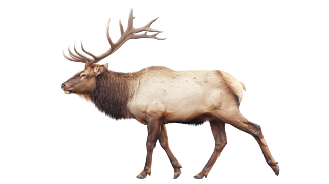 a bull Elk/Wapiti with antlers in a side view, full body, PNG, Wildlife-themed, isolated, and transparent Graphic illustration. Generative ai