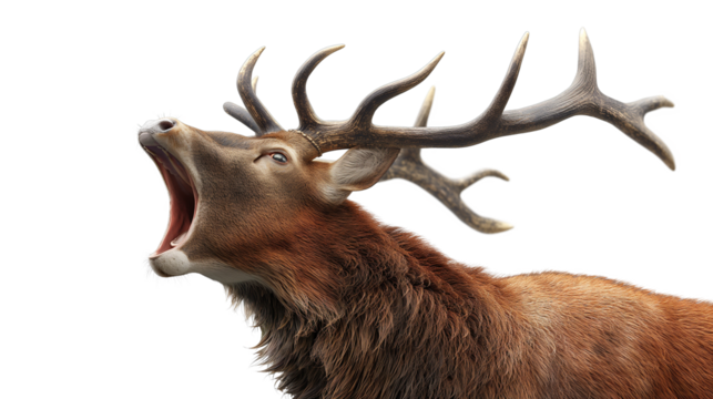 A deer with its mouth open, making a loud noise isolated on a transparent background