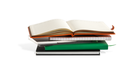 Blank spiral notebook for design, creativity, and note-taking on a white isolated background.