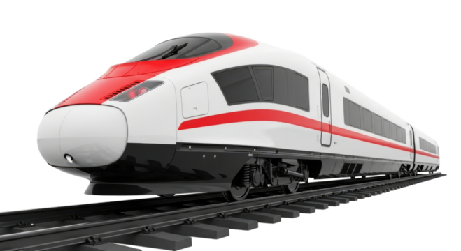Sleek high-speed train on transparent background
