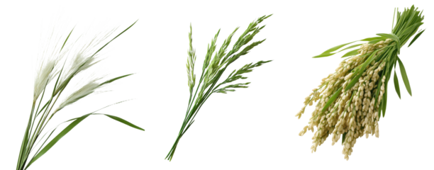 With a clipping path, the image features cane, reed seeds, and green grass on a white background