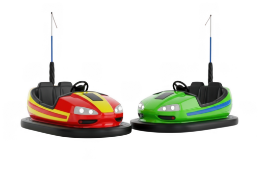 Two bumper cars isolated on transparent background