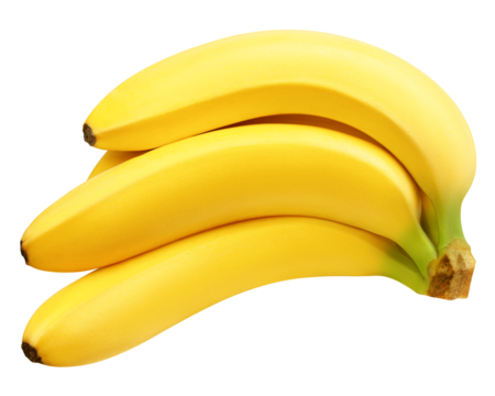 Fresh bananas isolated on a pure white transparent background, perfect for product showcases and fruit-related imagery with a clean, minimalist design.