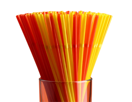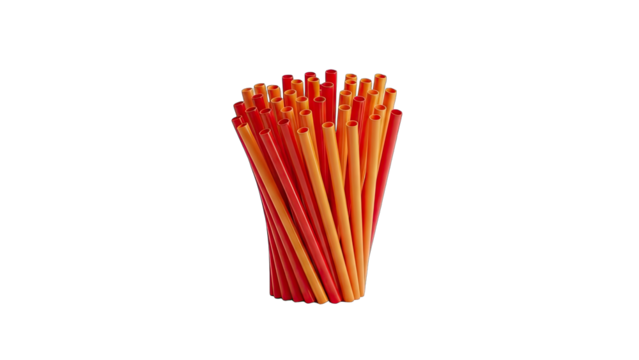 Collection Of Bright Red And Orange Plastic Drinking Straws Standing Upright On Transparent Background
