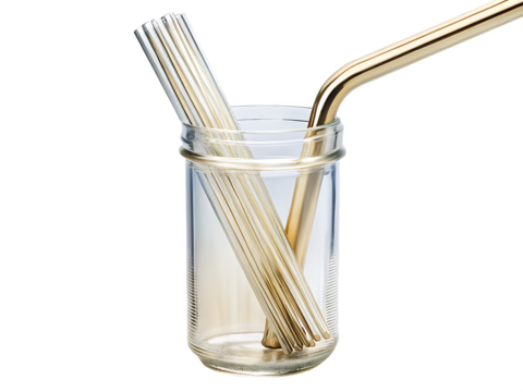 Vibrant bowl with golden liquid and angled straw on transparent background