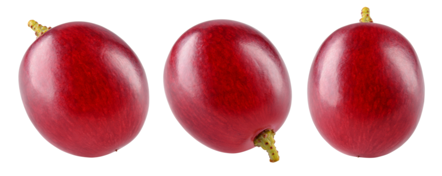 Grape top view. Three red grapes isolated on transparent or white. Fresh red grape macro. Grapes transparent PNG.