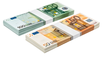 Isolated Stacks of Euro Banknotes, Bundles of Cash, European Currency, Wealth and Finance