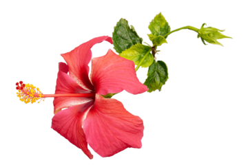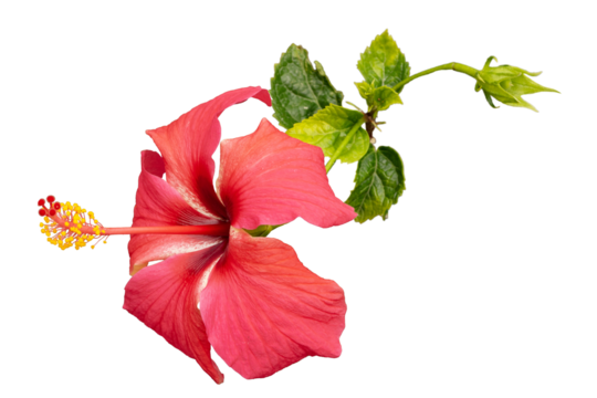 Close-up of Red Hibiscus Flower Isolated on White – Chinese Hibiscus (Hibiscus rosa-sinensis), Shoeblack Plant, Gumamela