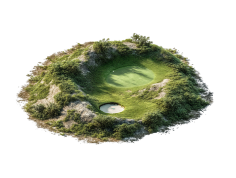 Floating Golf Green with Sand Traps and Trees  on transparent background
