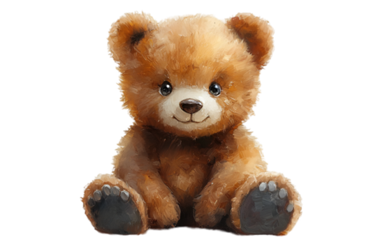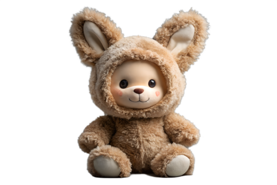 A cute teddy bear wearing a bunny costume isolated on transparent background