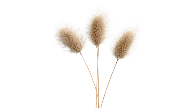 Three fluffy bunny tail grass plumes with soft texture against a stark black background
