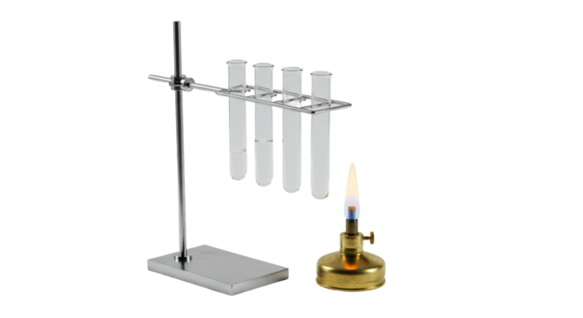 Isolated Test Tubes in a Rack with Bunsen Burner for Scientific Experimentation