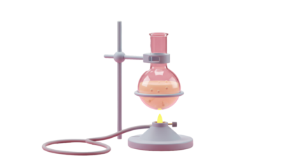 Isolated Chemistry Experiment with Round Bottom Flask and Bunsen Burner