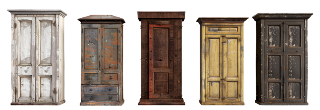 Set of Old wooden dresser classic over white background
