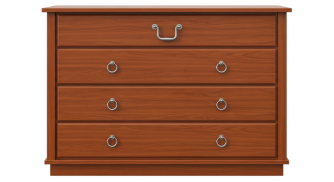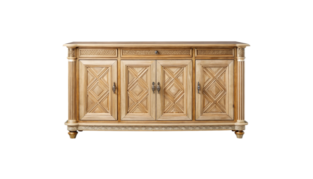 Ornate wooden dresser isolated on transparent background for interior design.