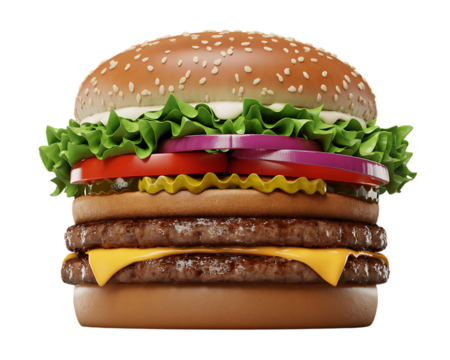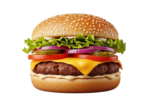 Irresistibly Mouthwatering Gourmet Burgers with an Array of Flavorful Toppings for Fast Food Lovers and Culinary Enthusiasts, isolated on a transparent background