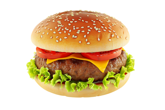 Delicious juicy hamburger with fresh toppings, perfect for enticing food ads and restaurant promotions, tempting burger lovers with its classic appeal and vibrant colors