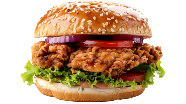 Fried chicken burger isolated on transparent background. PNG file, cut out
