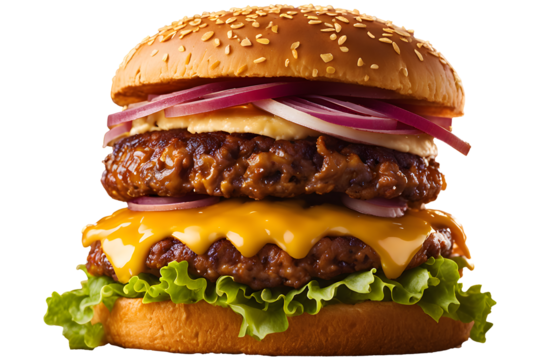 Tasty bacon burger meal with crispy curls fries and a large cola isolated on white background
