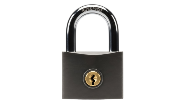 Heavy duty padlock PNG isolated on transparent background, security lock for safety and protection against theft