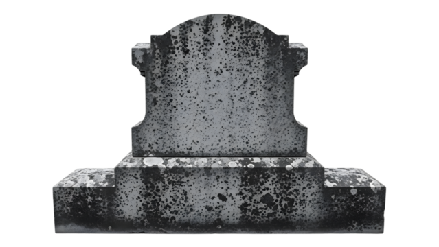 Weathered gray tombstone with black spots isolated on a transparent background gravestone headstone